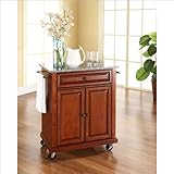 Crosley Furniture Solid Granite Top Portable Kitchen Cart/Island in Classic Cherry Finish