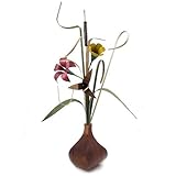 - Held within a sculptural table-top vase crafted of walnut, Overall height is approximately 19-20"