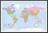World Map Political Wallá Dry Mounted Poster Wood Framed.