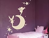 Best Quality Vinyl Wall Sticker Decals - Moon with elves ( Size: 16in x 9in - Color: white ) - No: 1343