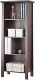 This Foremost bookcase is made of hardwood with wood veneer in an elegant espresso finish. It has three adjustable shelves and one fixed middle shelf. Assembly is required.