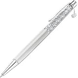 The elegance and beauty of Swarovski designs are presented in this sleek and slender white pearl ballpoint pen. The rhodium-plated heart charm sparkles in clear crystal pavé with red epoxy back. The body contains 160 crystals, which play with the light as you write. The pen comes in a stylish velvet pouch and the high-quality refill can be replaced quickly and easily. Swarovski Authorized Dealer. Size: 5.63 x 0.51 x 0.39; Weight: oz