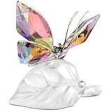 This delicate butterfly in faceted Crystal Aurora Boreale daintily flutters over a matt crystal leaf. The silver-tone metal antennae create an interesting play of elements. Add a touch of natural beauty to your home with this exquisite piece! Measures 2 1/4" x 1 7/8"