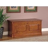 Dimension: 38"L x 17"W x 18"H Finish: Oak Material: Wood Classic Oak Finish Storage Cedar Hope Chest This roomy chest makes bedside storage easy. Crafted in a solid wood frame for long-lasting strength. Some Assembly required.