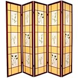 Oriental Furniture Unique Home Decor 6-Feet Herbal Floral Shoji Privacy Screen Room Divider, 5 Panel Rosewood