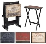 From the durable construction to the vintage decoupage top, the Tuscan Wine TV Trays are a great choice for any decor. It's easier to dine in front of the TV with this home theater furniture that comes with a stand for easy storage. Provide a stylish and convenient set-up; buy today.Set includes 4 trays and 1 stand.Heavy duty construction provides years of use.Rich finishes add a stylish touch. Actual size is 25.5"Hx19.5"W